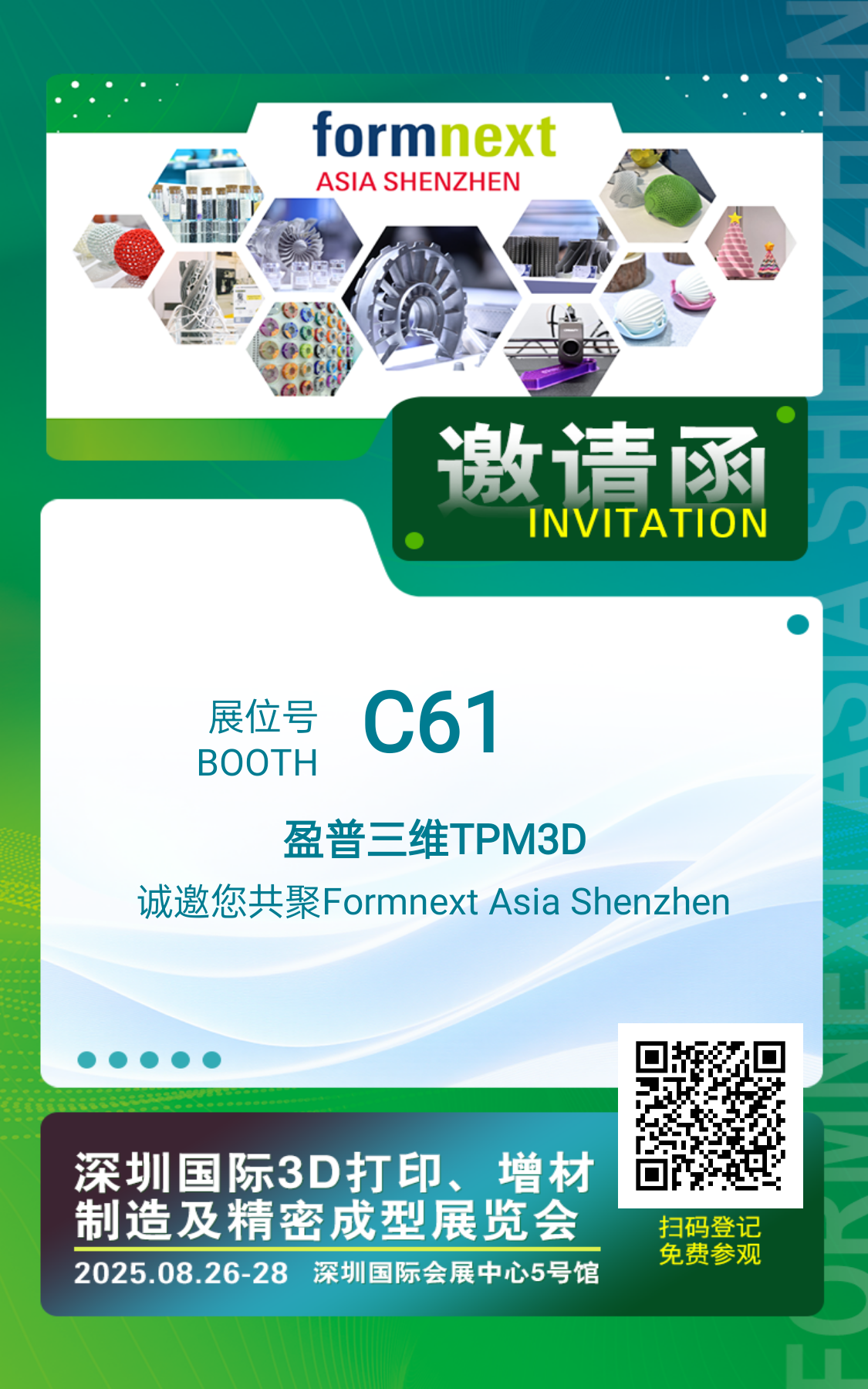 8月26日-28日,F(xiàn)ormnext深圳展即將盛大啟幕,全球增材制造行業(yè)的目光將再度聚焦深圳國(guó)際會(huì)展中心!作為SLS(選擇性激光燒結(jié))技術(shù)領(lǐng)域的領(lǐng)先企業(yè),盈普三維將攜大尺寸雙激光工業(yè)級(jí)打印設(shè)備P550DL、全新材料與創(chuàng)新應(yīng)用展件,亮相C61展位。我們誠(chéng)邀您蒞臨,一同探索SLS技術(shù)如何革新傳統(tǒng)制造,賦能工業(yè)、醫(yī)療、藝術(shù)等領(lǐng)域創(chuàng)新。